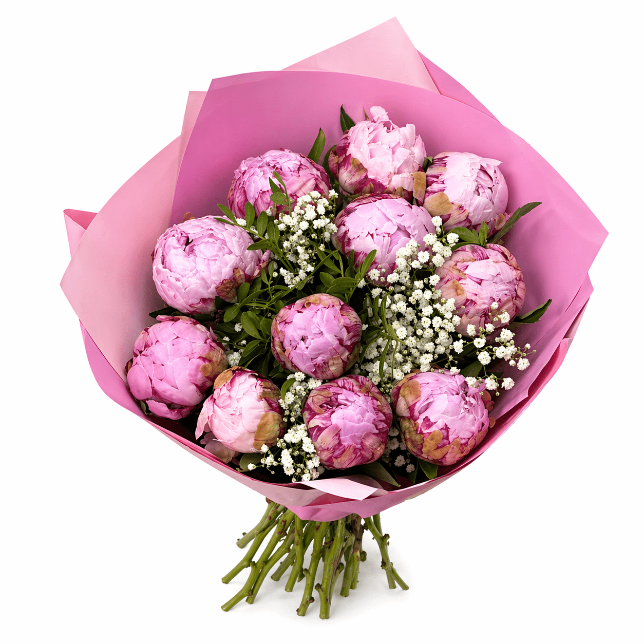 Buchetul de 11 bujori denumit și Peonia simbolizează romantismul, dragostea și frumusețea.